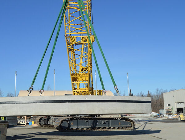 The photo shows box culverts for a project at Sheep Mountain, at Mile 114 of the Glenn Highway. The 12′ x 14′ sections of pre-cast concrete box culverts replace the old metal ones which are in place to divert flash floods. The new Dywidag System to connect the units together grew less than 1″ for the total 140 feet span.